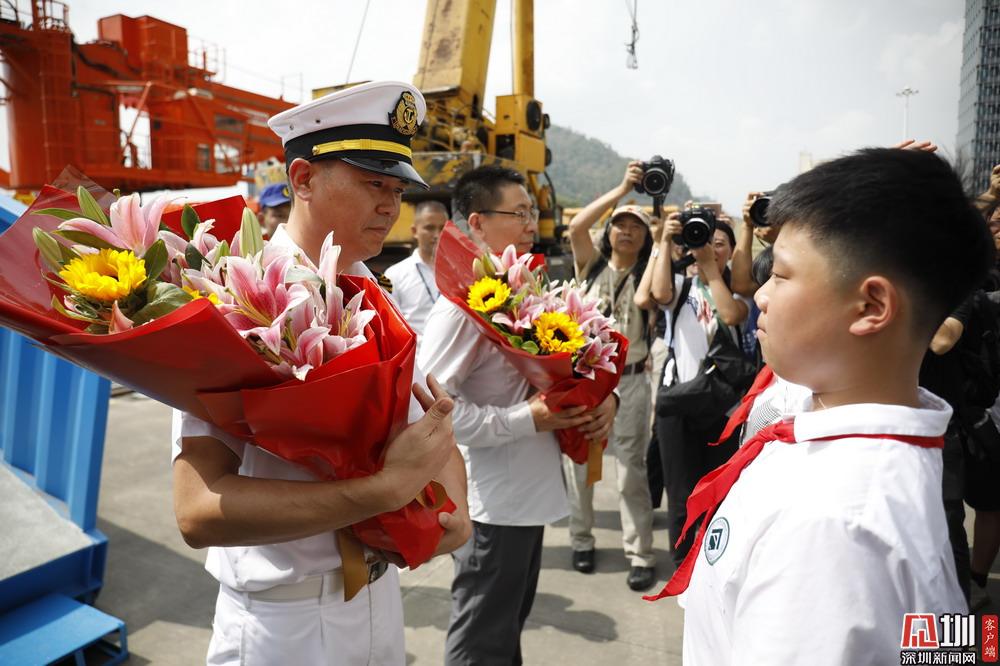 當(dāng)天下午,近百名市民、學(xué)生及各市直部門和中央駐深涉海部門代表看到“雪龍2”號船靠泊碼頭,發(fā)出熱烈的歡呼聲,他們揮舞著手中的紅旗熱烈歡迎“雪龍2”號科考船及國家第36次南極考察隊抵達深圳。當(dāng)船舶靠穩(wěn)并架設(shè)好舷梯后,深圳市政府副市長、黨組成員黃敏等領(lǐng)導(dǎo)攜兩位少先隊員迎接考察隊代表,并獻花握手致意,表達誠摯的歡迎和衷心的祝福。