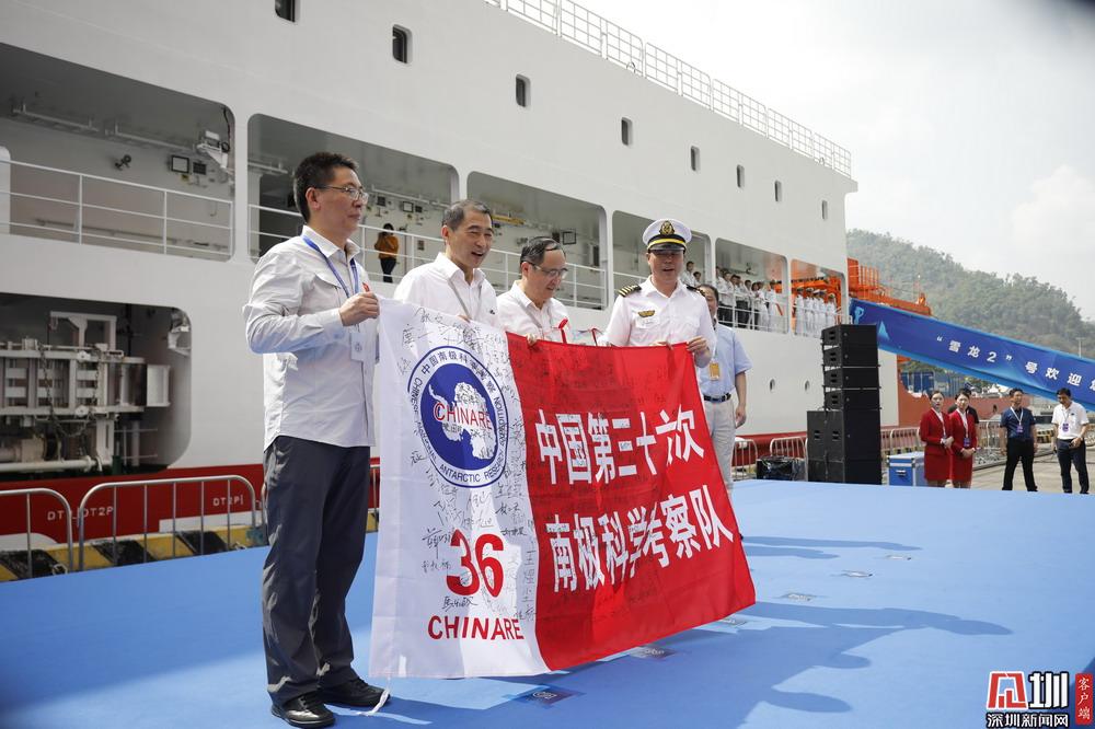 雪龍?zhí)柎L(右)向深圳贈送禮物