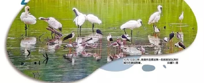 8、昨日一早,10只黑臉琵鷺在秋雨中飛抵福田紅樹林保護區(qū)魚塘,被正在進行鳥類同步調(diào)查的深圳觀鳥協(xié)會調(diào)查員發(fā)現(xiàn)。據(jù)悉,這是今年候鳥遷徙季節(jié)到來后首批來到深圳越冬的黑臉琵鷺。