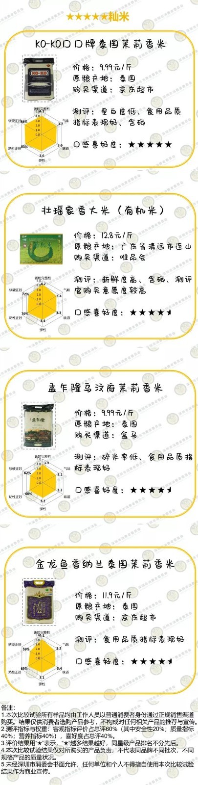實驗室檢測的20款大米的4項重金屬均合格,100項農藥殘留、黃曲霉毒素B?和石蠟均未檢出,結果表明,不必擔心大米的農藥重金屬等安全問題,大家可以放心地吃!