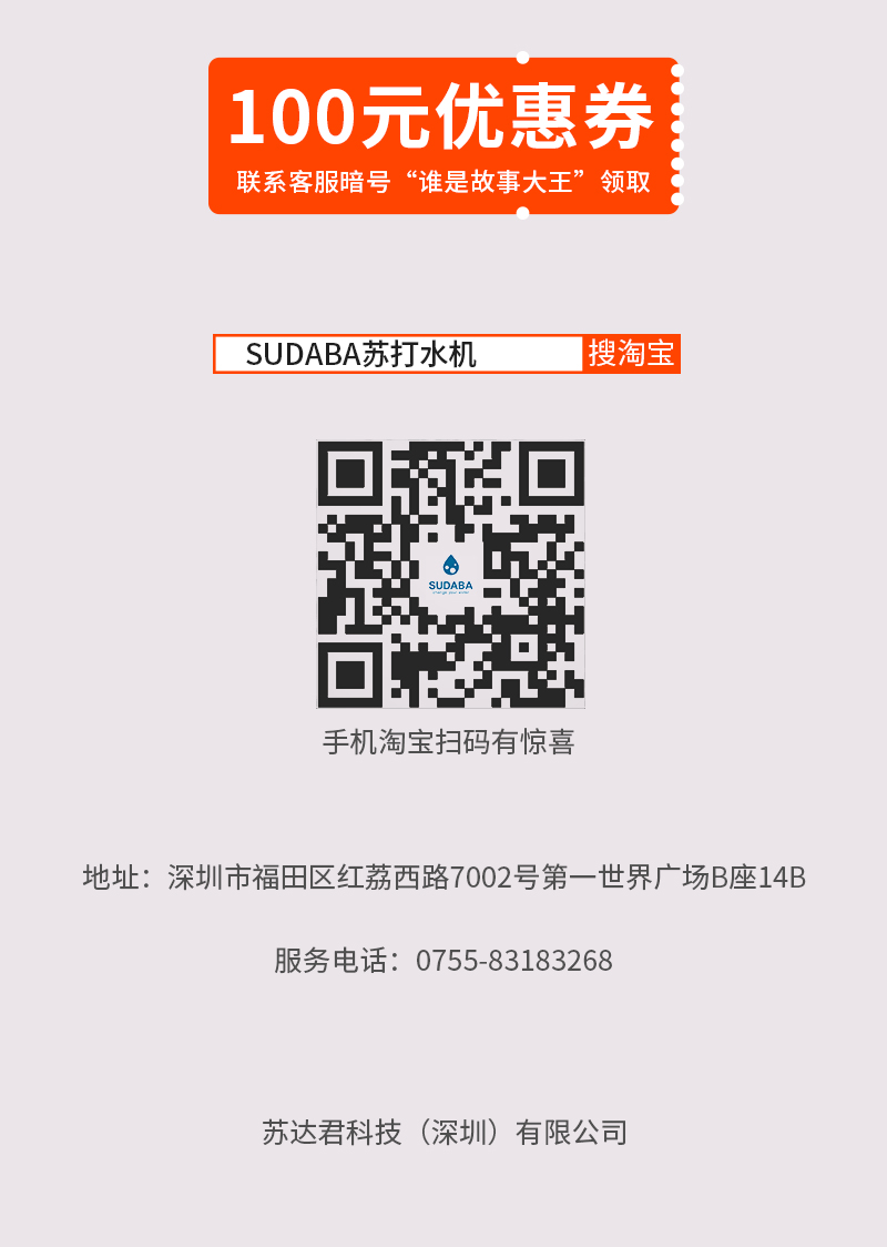 作為“誰是故事大王”活動(dòng)的指定自制蘇打水專用產(chǎn)品,蘇達(dá)君科技將為晉級決賽的每位選手提供價(jià)值298元的 SUDABA蘇達(dá)吧蘇打水機(jī)一臺(tái),鼓勵(lì)小選手們在舞臺(tái)上展現(xiàn)風(fēng)采,獎(jiǎng)勵(lì)小“故事大王”們的優(yōu)異表現(xiàn)。