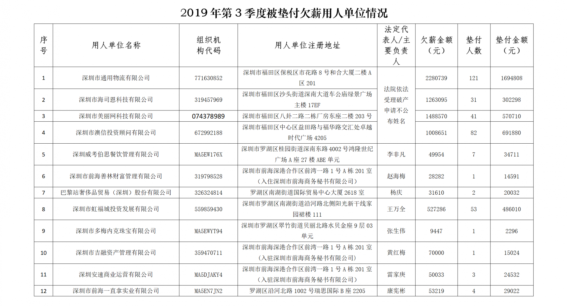原標(biāo)題:最高拖欠565萬(wàn)余元!深圳曝光3季度33家被墊付欠薪企業(yè)