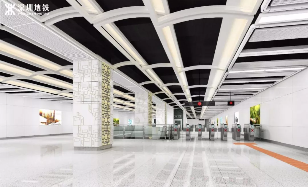 原9號線一期線路的裝修設(shè)計主題為“宜居生活”,體現(xiàn)的是深圳宜居生態(tài),綠色生活的概念,設(shè)計元素選取的是深圳嶺南及客家文化。