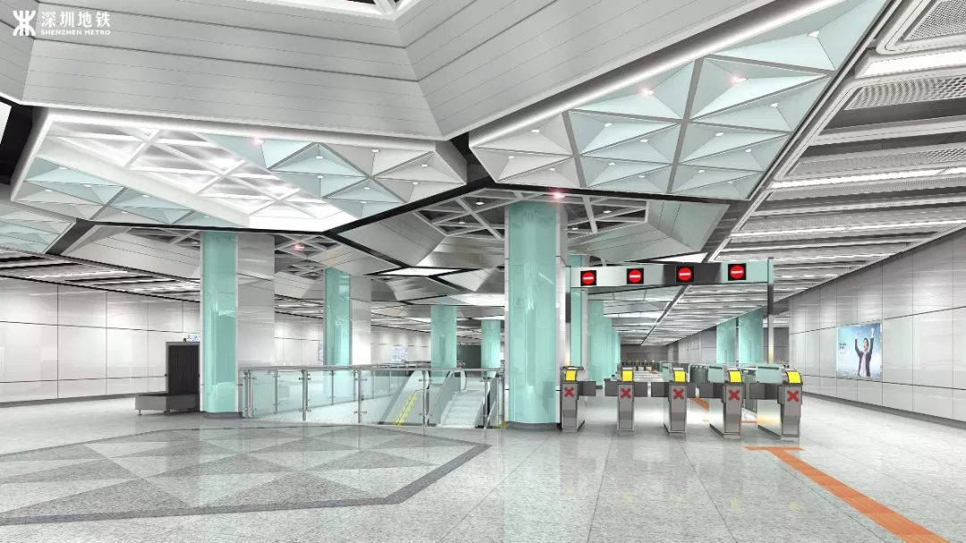 利用三角體的幾何元素,打造站臺站廳個性區(qū)域,結(jié)合燈光設(shè)計,形成鉆石切割面的效果,形成鮮明的以創(chuàng)新知識為代表的特色區(qū)域。