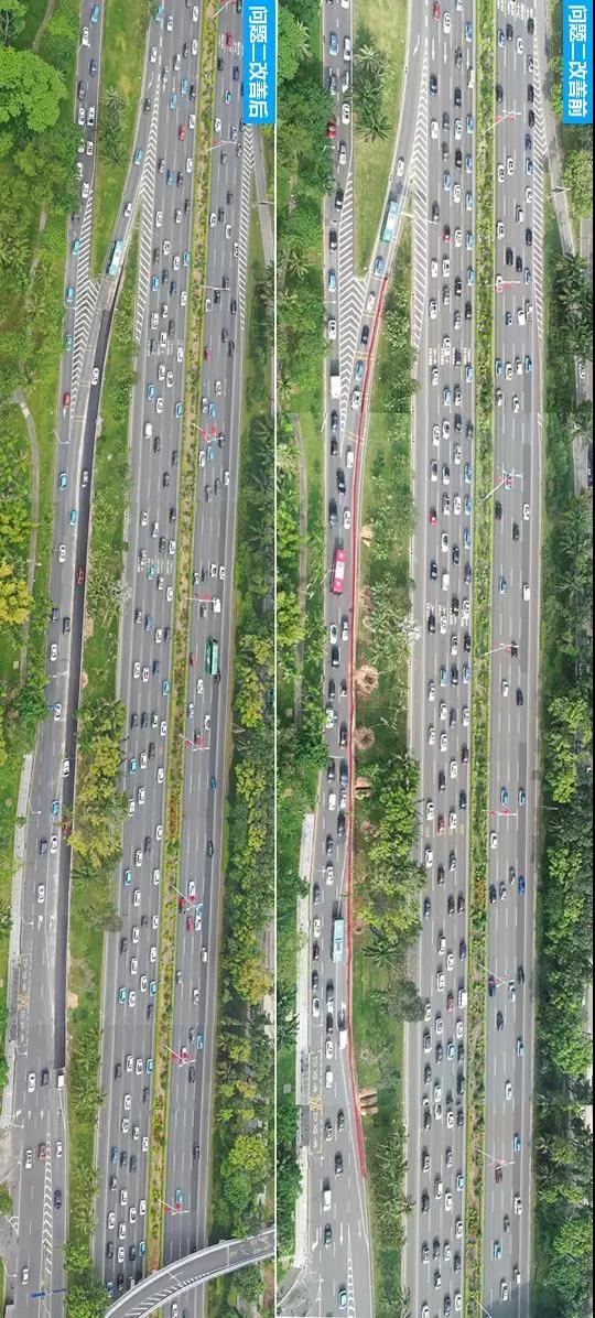 這一次改造歷時(shí)4個(gè)月,目前通行數(shù)據(jù)顯示,該路段總體運(yùn)行效率較改善前提升12%,高峰期路段平均車(chē)速由改善前的22.4km/h提高到40.4km/h。