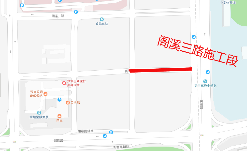 2019年10月28日至2020年1月31日共95天,封閉沙田圍三街(如意路口至閣溪三路口段)進行施工。原經(jīng)此路段通行的車輛,可改沿沙田圍二街或周邊其它道路通行。