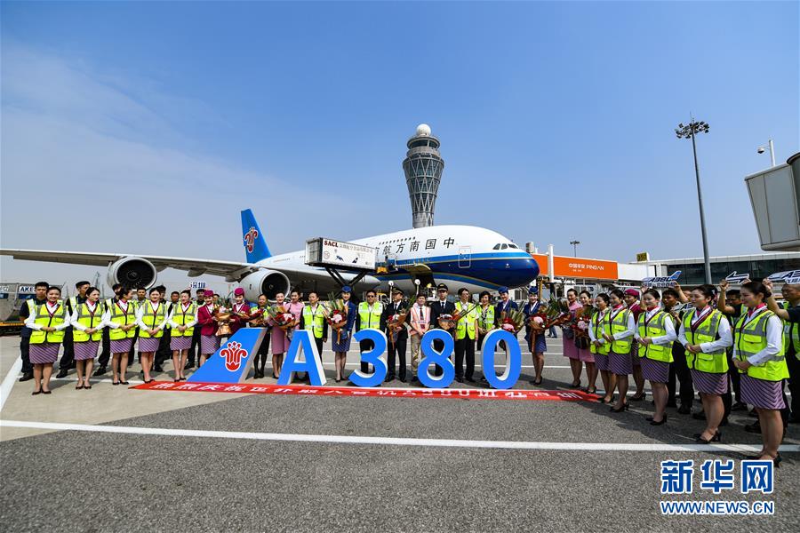 10月27日,機(jī)組、地勤人員等慶??罩锌蛙嘇380客機(jī)重返深圳機(jī)場(chǎng)。當(dāng)日下午,由全球最大寬體客機(jī)——空中客車A380執(zhí)飛的南航CZ3153次航班由深圳起飛前往北京,標(biāo)志著這款“空中巨無(wú)霸”機(jī)型重返深圳機(jī)場(chǎng)。南航曾在2014年5月開始啟用A380執(zhí)飛京深航線,后因動(dòng)態(tài)運(yùn)力調(diào)配停飛。新華社記者毛思倩攝