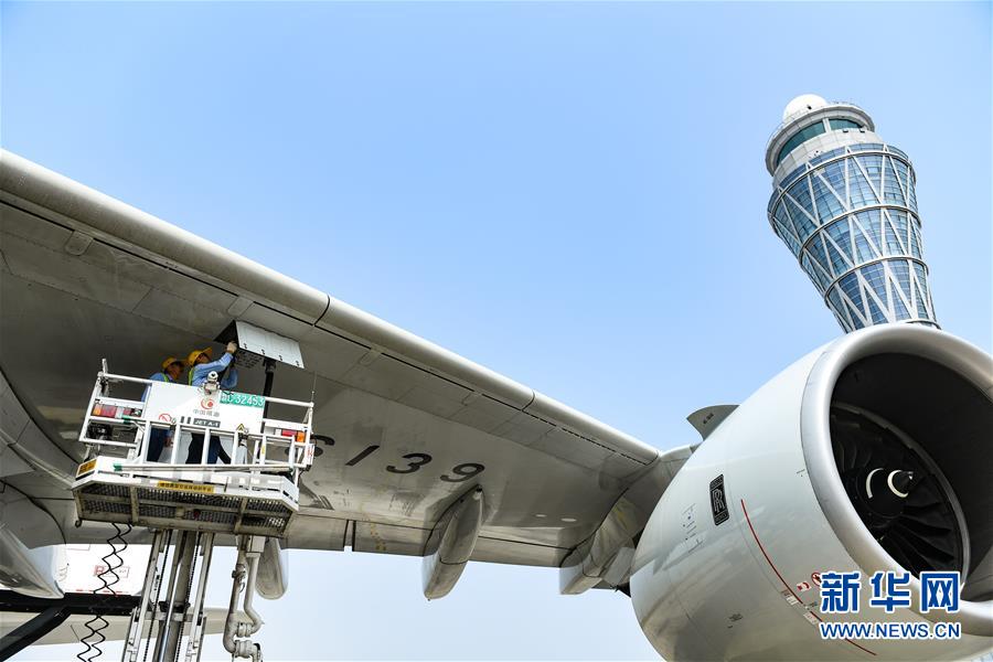 10月27日,工作人員在深圳機(jī)場(chǎng)為南方航空空中客車(chē)A380客機(jī)加油。當(dāng)日下午,由全球最大寬體客機(jī)——空中客車(chē)A380執(zhí)飛的南航CZ3153次航班由深圳起飛前往北京,標(biāo)志著這款“空中巨無(wú)霸”機(jī)型重返深圳機(jī)場(chǎng)。南航曾在2014年5月開(kāi)始啟用A380執(zhí)飛京深航線(xiàn),后因動(dòng)態(tài)運(yùn)力調(diào)配停飛。新華社記者毛思倩攝