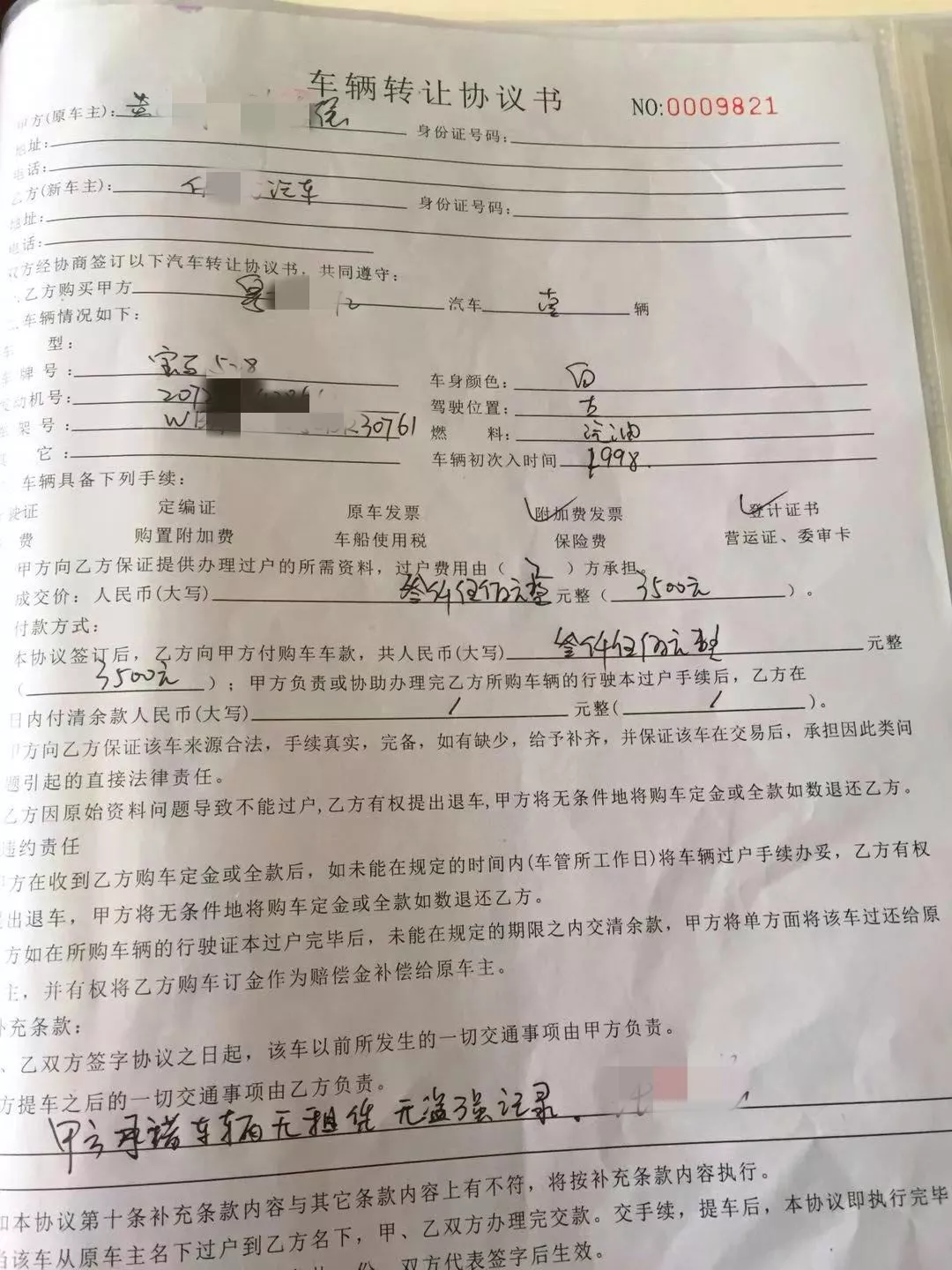 (現(xiàn)場發(fā)現(xiàn)的車輛轉(zhuǎn)讓協(xié)議書)