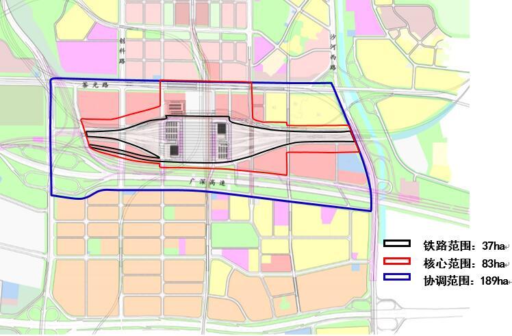 本次方案征集任務(wù)分核心區(qū)和協(xié)調(diào)區(qū)兩個(gè)層面。核心區(qū)面積約83ha(下圖紅色線(xiàn)范圍),本次方案征集需完成核心區(qū)范圍的建筑概念設(shè)計(jì);協(xié)調(diào)區(qū)包含核心區(qū),總面積約189ha(下圖藍(lán)色線(xiàn)范圍),本次方案征集需完成協(xié)調(diào)區(qū)范圍的概念性城市設(shè)計(jì);如有必要,可不限于此范圍。