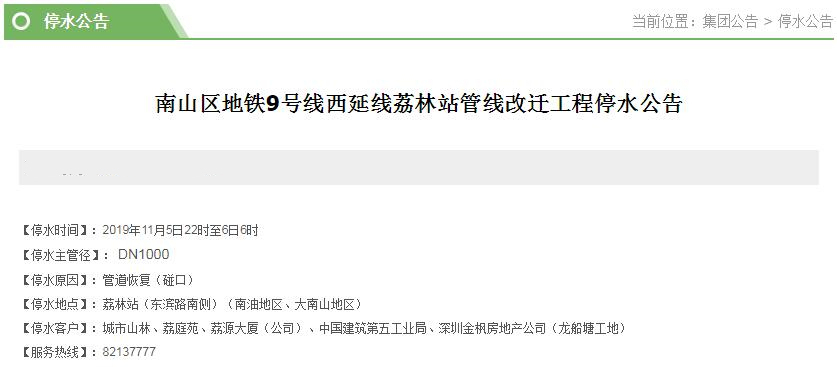 停水客戶:南山地稅、麒麟新村、南山法院