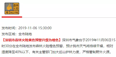深圳市氣象臺已于昨日(6日)15時30分將森林火險黃色預警升級為橙色。各位小伙伴一定要記得,居家或外出注意防火和安全用火。