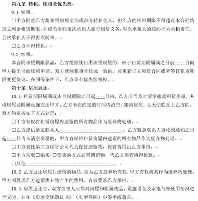 4、增設(shè)承租人下落不明時,出租人對租賃房屋內(nèi)的遺留物處理條款。實踐中,存在很多承租人無力支付租金時斷絕與出租人聯(lián)系的情形。為解決出租人無法聯(lián)系承租人時對租賃房屋內(nèi)遺留物的處理問題,新版合同增設(shè)承租人未按約定交還房屋且下落不明時遺留物的處理條款,由雙方當事人在簽訂合同時就此問題協(xié)商一致,避免出租人遭受無法收回房屋導致房屋使用價值無法實現(xiàn)的損失或者因自行處置遺留物引起糾紛、面臨侵權(quán)責任的風險,有效解決承租人下落不明時租賃房屋內(nèi)遺留物的處理問題。