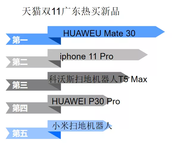在熱賣的新品種,老廣對(duì)華為Mate 30熱情最高,其次是Iphone11 pro。值得一提的是,今年天貓雙11,蘋果官方旗艦店天貓僅用10分鐘,成交額超去年全天7倍。但是,顯然老廣對(duì)數(shù)碼產(chǎn)品有自己的看法。熱賣新品TOP5后三席分別是科沃斯掃地機(jī)器人T5 Max、華為 P30 Pro和小米掃地機(jī)器人,可見老廣對(duì)數(shù)碼科技產(chǎn)品比較鐘愛,持家的屬性讓家居類數(shù)碼產(chǎn)品獨(dú)受寵愛。