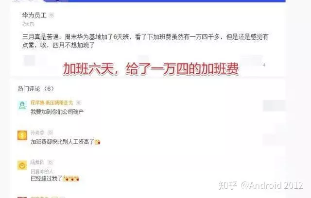 曾有華為員工在網(wǎng)上表示,華為基地加了6天班,看了下加班費,雖然有14000多,但還是感覺有點累,4月不想加班了。