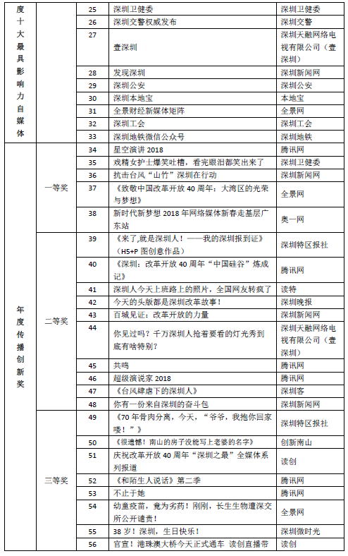 深圳年度優(yōu)秀政務(wù)新媒體名單