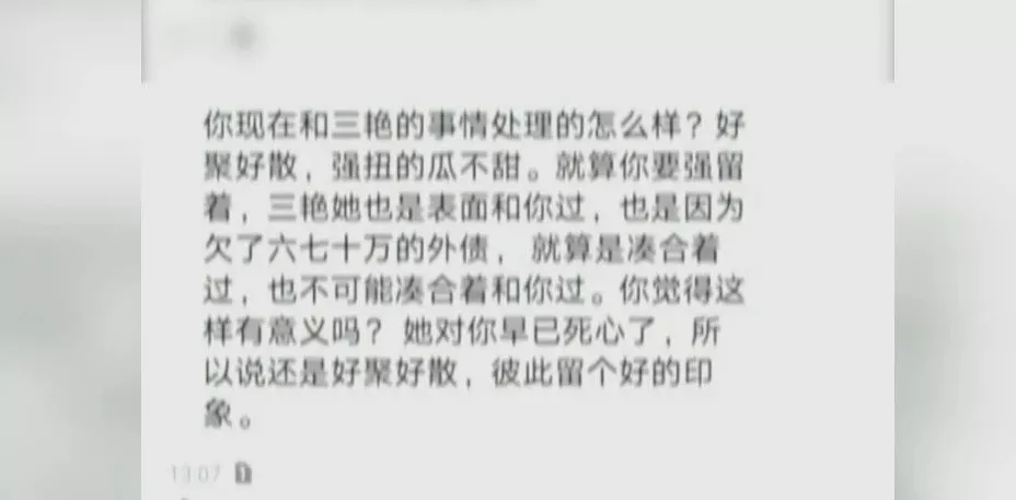“這個陌生男的就說,讓我該離婚就離,說她的心已經(jīng)不在我這里了,強扭的瓜不甜什么的?!?/p>
