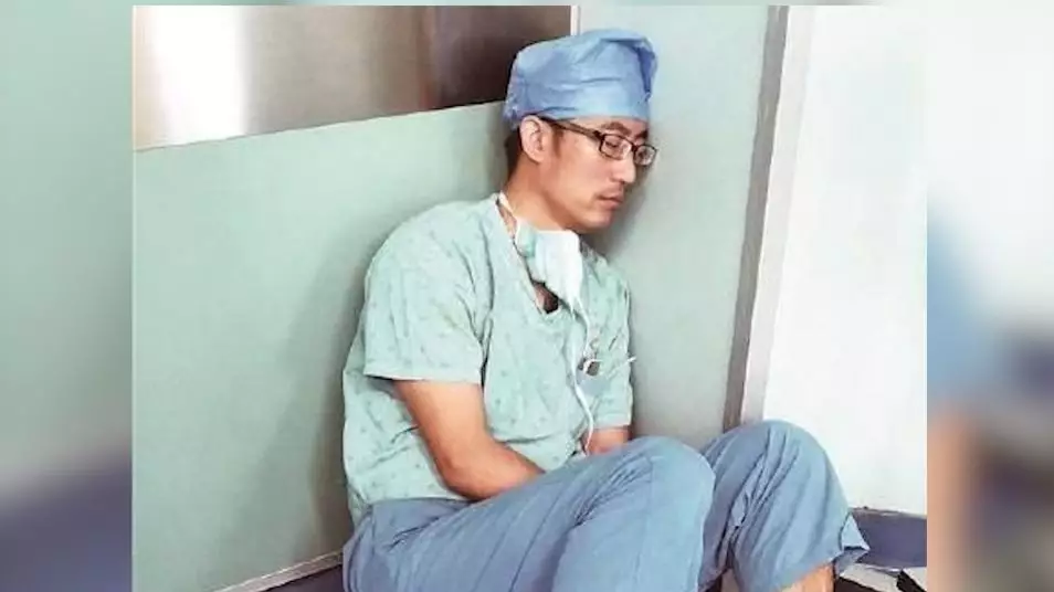 8月,深圳龍崗中心醫(yī)院骨關節(jié)科的一位醫(yī)生代宇因一張照片在網上走紅。圖片中,他穿著手術服,坐在手術室的地上,靠墻睡著了。