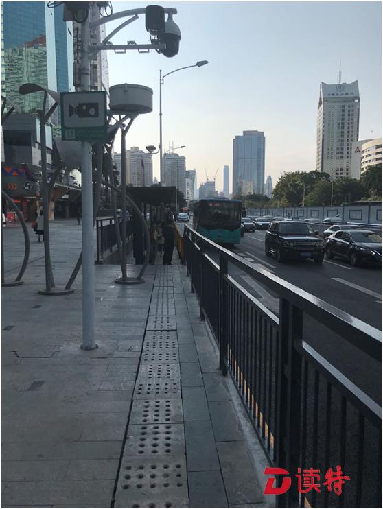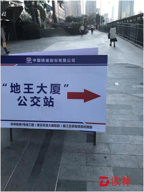 而另一處地點(diǎn),從大劇院地鐵站 F出口處往羅湖書(shū)城方向,行人須繞行街邊花園步道和街邊商家通道,對(duì)于騎自行車和電動(dòng)車的人尤其不便。而地王大廈公交站臺(tái)跟崗廈北地鐵站②公交站臺(tái)一樣非常狹窄,站臺(tái)左右兩邊的人行道狹窄處僅約兩米寬。在該處站臺(tái)背后,中國(guó)鐵建股份有限公司設(shè)置了一塊站名指示牌,署名單位為地鐵5號(hào)線施工總承包項(xiàng)目經(jīng)理部。記者詢問(wèn)了一位路過(guò)的市民,市民說(shuō)經(jīng)常路過(guò)此地,應(yīng)該是地鐵施工所以就占用了之前的人行道,"這里走路還好,騎車就不方便了,因?yàn)橛信_(tái)階"。