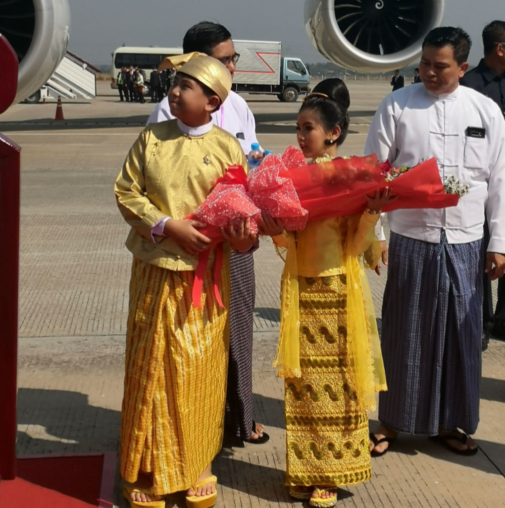 緬甸第一副總統(tǒng)敏瑞率多名內(nèi)閣部長(zhǎng)熱情相迎。