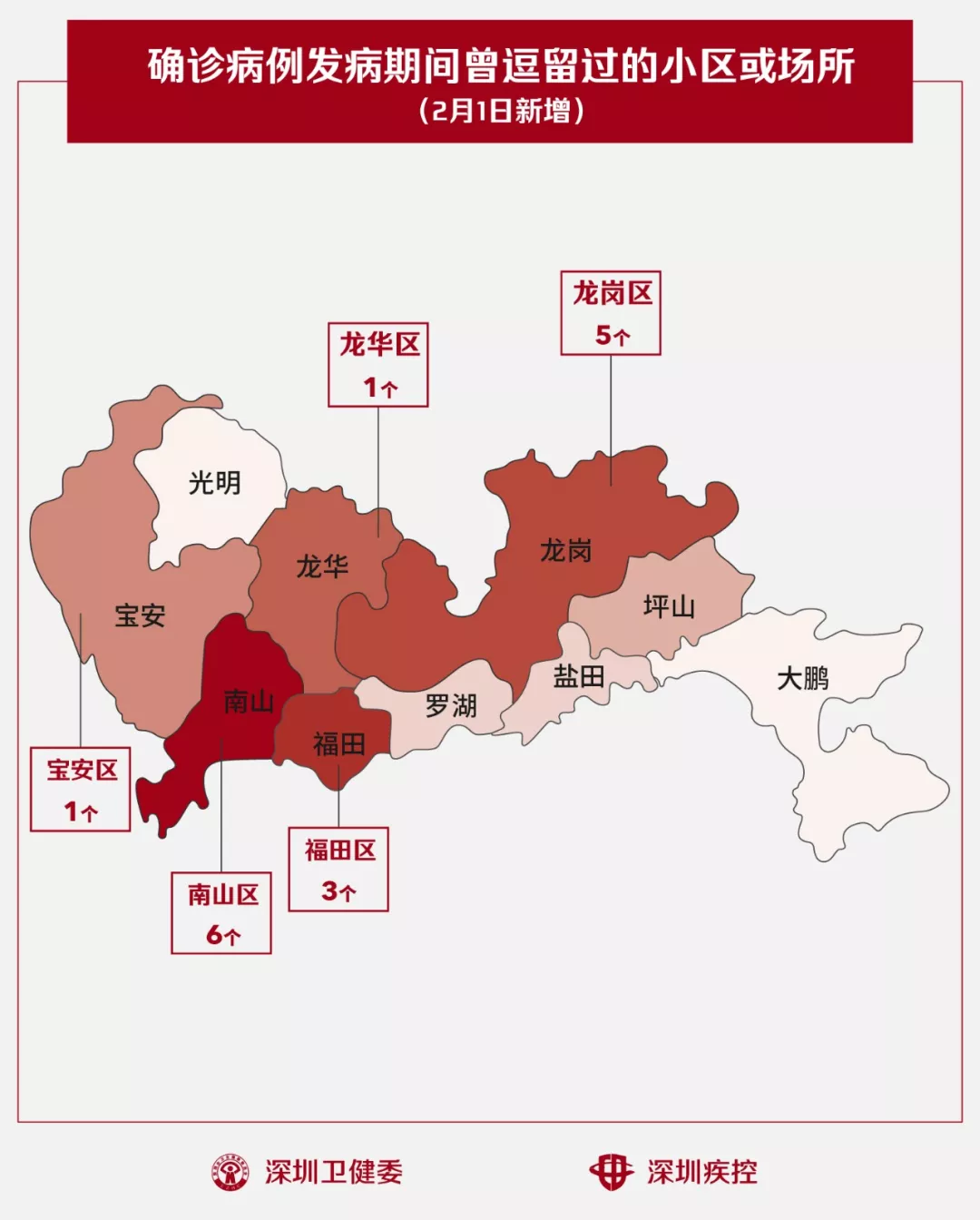 深圳的“新型肺炎”確診病例仍在不斷增加,截至2月1日24時,累計確診196例。 2月1日,疾控專業(yè)人員通過最新的流行病學調(diào)查確認,深圳新確診病人在出現(xiàn)病征期間逗留過的小區(qū)或場所,增加了16個。 請這些小區(qū)的居民不要擔心,各相關部門比你還緊張,已經(jīng)第一時間對病毒進行了“圍剿”—— 該治療的治療:確診患者已轉(zhuǎn)到深圳市第三人民醫(yī)院治療; 該隔離的隔離:密切接觸者已通過流行病學調(diào)查被找到,全部接受社區(qū)基層防控工作小組“三位一體”的隔離醫(yī)學觀察和管理; 該消毒的消毒:疾控工作人員已經(jīng)對病人住所和公共區(qū)域進行了終末消殺,并為小區(qū)的日常消毒提供了專業(yè)指導。 各位居民只要跟足政府和社區(qū)的指引,做好日常預防即可,無需“草木皆兵”。等病人康復出院了,他們還是我們的好朋友、好同事、好鄰居。 南山區(qū)(6個) 西海灣花園 后海雅園 雍景軒賞湖閣 桑泰丹華府三期 佳兆業(yè)前海廣場 陽光華藝大廈B座 龍崗區(qū)(5個) 回龍埔萬科翰鄰城 大族河山 華創(chuàng)云軒B座 秀麗山莊 中央悅城 福田區(qū)(3個) 福華路維也納酒店 八卦四路意馨居 景田天健花園 龍華區(qū)(1個) 春華四季園 寶安區(qū)(1個) 萬象新天2期 1月29日新增23例 1月30日新增24例 1月31日新增60例 2月1日新增26例 近日深圳新報告的確診病例數(shù) 似乎有點多 病例數(shù)的快速增加,其實有一個很重要的原因是深圳的檢測能力和效率在快速提高。 復旦大學附屬華山醫(yī)院感染科張文宏教授曾指出,從臨床來看,病例數(shù)的增加受三個因素的決定,即患病人數(shù)、構成比(這些人都是干什么的)、當?shù)貦z測出來的力度多大。在病毒研究領域有一句名言,“沒有檢測就沒有傳染病”。 深圳市衛(wèi)健委主任羅樂宣介紹,最近幾天深圳的病原體檢測機構數(shù)量已大幅“擴容”,從原來只有深圳市疾控中心和深圳市三醫(yī)院2家,迅速擴大到28家。 與此同時,近日廣東省疾控中心已正式將病毒篩查的確診權限下放到深圳市疾控中心。這意味著,深圳在進行確診工作之前,不必再將樣本送到廣州復核。 這一系列措施都使深圳確診的過程更快、效率更高。 資料來源:深圳市疾控中心、深圳市衛(wèi)健委