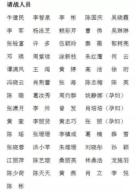 產(chǎn)科請戰(zhàn)人員名單