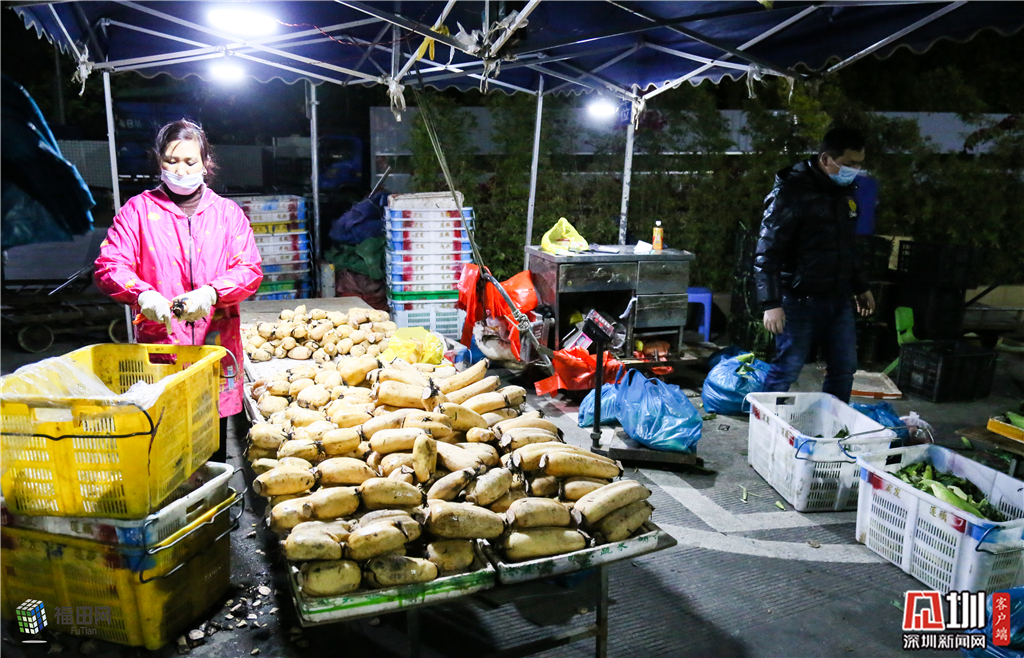 3時40分,來自江西的老張和他妻子就開始為他們經(jīng)營多年的蓮藕、玉米檔口忙活起來,客源主要還是一些老顧客。老張說,最近的農(nóng)批市場管控的比以往嚴格了許多,不帶口罩或者體溫超標都不能進市場。