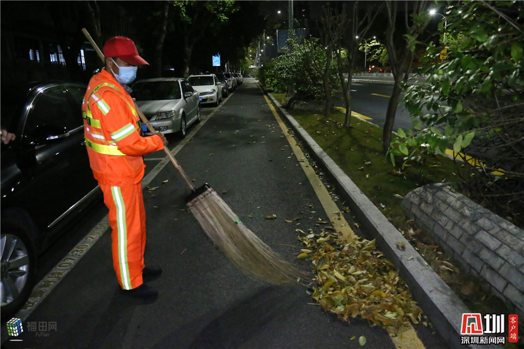 來自湖南的田朝勝,在清潔工人這個崗位已經(jīng)工作10年,每天清晨他都在清掃著這個片區(qū)路面,地面上泛黃的葉子在黑夜里被他掃的沙沙作響。他說,疫情期間,很多環(huán)衛(wèi)人員回老家后再想回深圳就沒那么容易了,有很多老鄉(xiāng)被隔離了回不來。“希望咱們的日子趕快好起來吧,2020年一天比一天過得好?!碧锍瘎俑锌?。