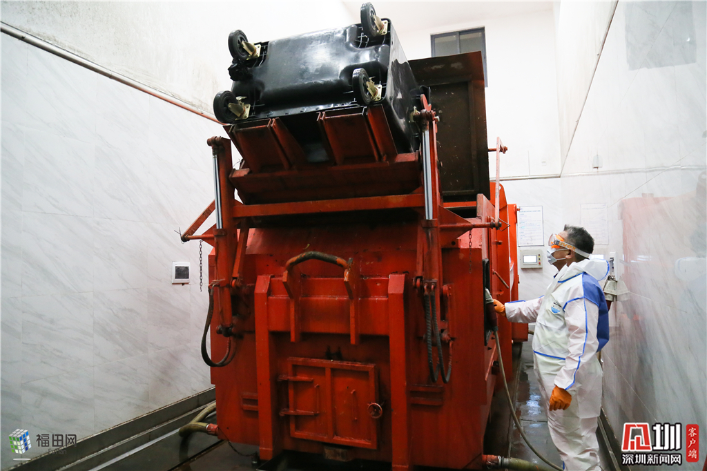 現(xiàn)代化城市生活固然便捷,但是也制造巨量的生活垃圾。垃圾清運人員凌晨3點半起床后開始準備一天的工作。這段時間,轉(zhuǎn)運站配置1:250的高濃度消毒液,一桶消毒液夠用一個垃圾轉(zhuǎn)運站。記者看到,電動垃圾轉(zhuǎn)運車上的四個環(huán)衛(wèi)消殺工作人員穿著厚厚的白藍色隔離服,全副武裝迎接來自轄區(qū)源源不斷運過來的垃圾桶,隨著垃圾轉(zhuǎn)運車后滋滋作響的電流聲,車后的平板放下來了,一桶桶垃圾平穩(wěn)有序的拽拉進垃圾轉(zhuǎn)運站進行壓縮,因工作服的關(guān)系,工作人員眼罩上經(jīng)常被一層厚厚的水霧糊上,工作期間會把手套摘除后,從手心處甩出一把把汗。