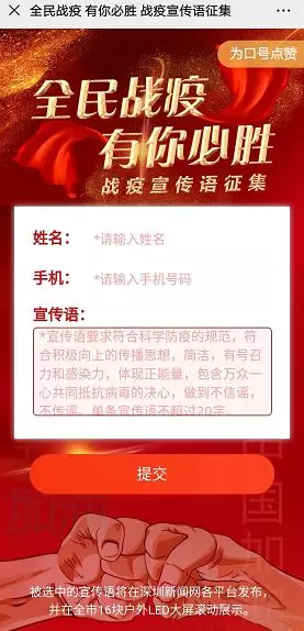深圳新聞網(wǎng)將結(jié)合網(wǎng)友點(diǎn)贊情況,選出若干條優(yōu)秀的戰(zhàn)疫宣傳語(yǔ)。