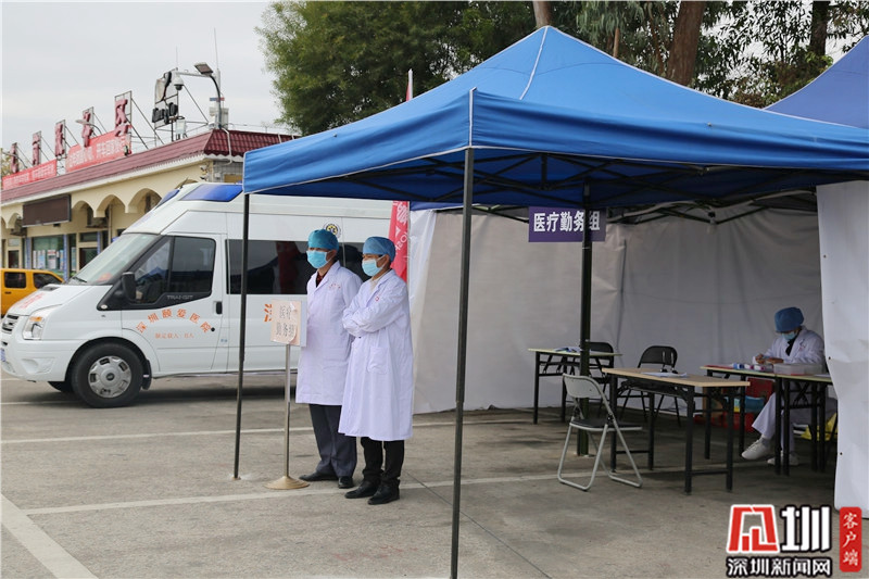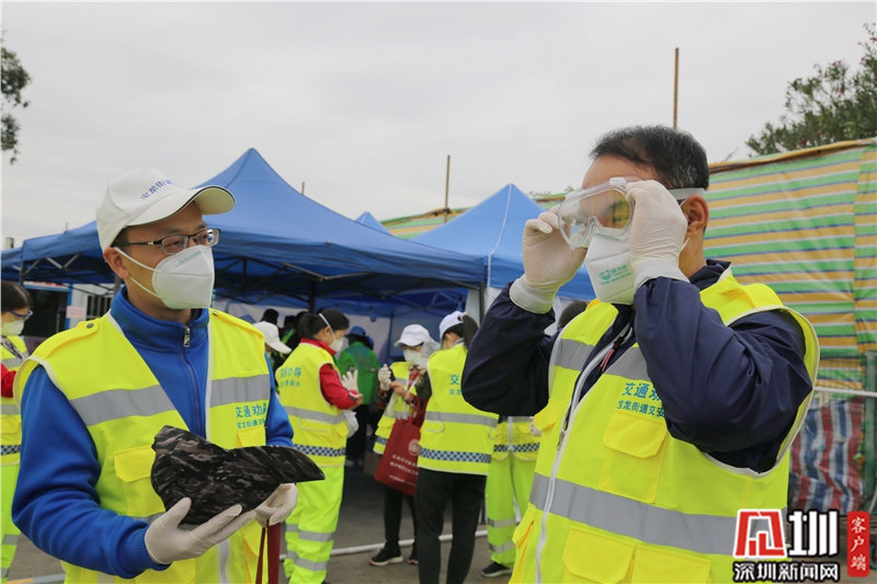 “全副武裝”后,龍崗區(qū)文化廣電旅游體育局局長劉德平(右)準(zhǔn)備上一線。