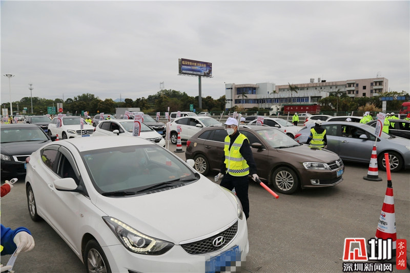 2月8日14點20分許,龍崗區(qū)文化廣電旅游體育局局長劉德平穿上反光衣、戴好護目鏡和手套,“全副武裝”準(zhǔn)備上一線。在接下來的四個小時里,他要和該局其他19名工作人員分成兩個小組,分別負責(zé)大巴車組和第5車道的檢疫檢測。這已經(jīng)是他第三次來到深汕高速龍崗服務(wù)區(qū)(金錢坳立交)檢查卡點一線工作,第一次是在1月31日。作為龍崗區(qū)文化廣電旅游體育局的“一把手”,劉德平也是該局組織的首批上一線人員之一。