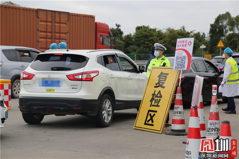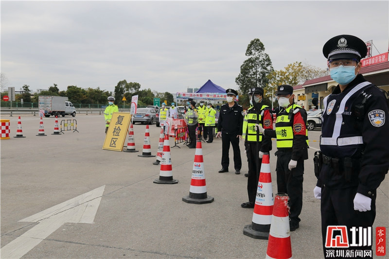 民警李勝仁(右一)在深汕高速龍崗服務(wù)區(qū)(金錢坳立交)檢查卡點值守。