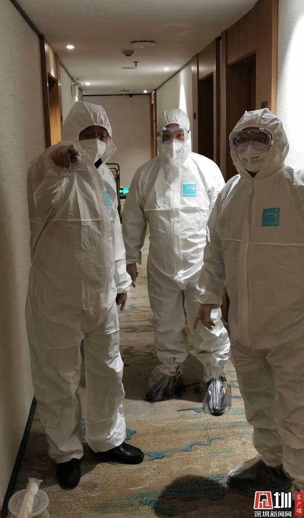 寶安管理局檢查集中隔離點廢物收集和定期消毒情況。