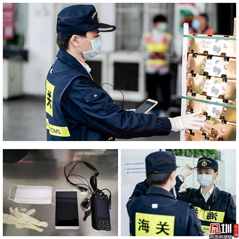 在文錦渡海關(guān)上班的祝子默開始了他上崗的一天。在接受了口岸監(jiān)管場的體溫檢查后,他戴上口罩和手套,裝配上海關(guān)查驗單兵設(shè)備,對進口水果實施查驗。