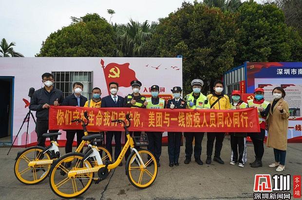 美團單車為深圳一線防疫人員送愛心餐和單車騎行卡。