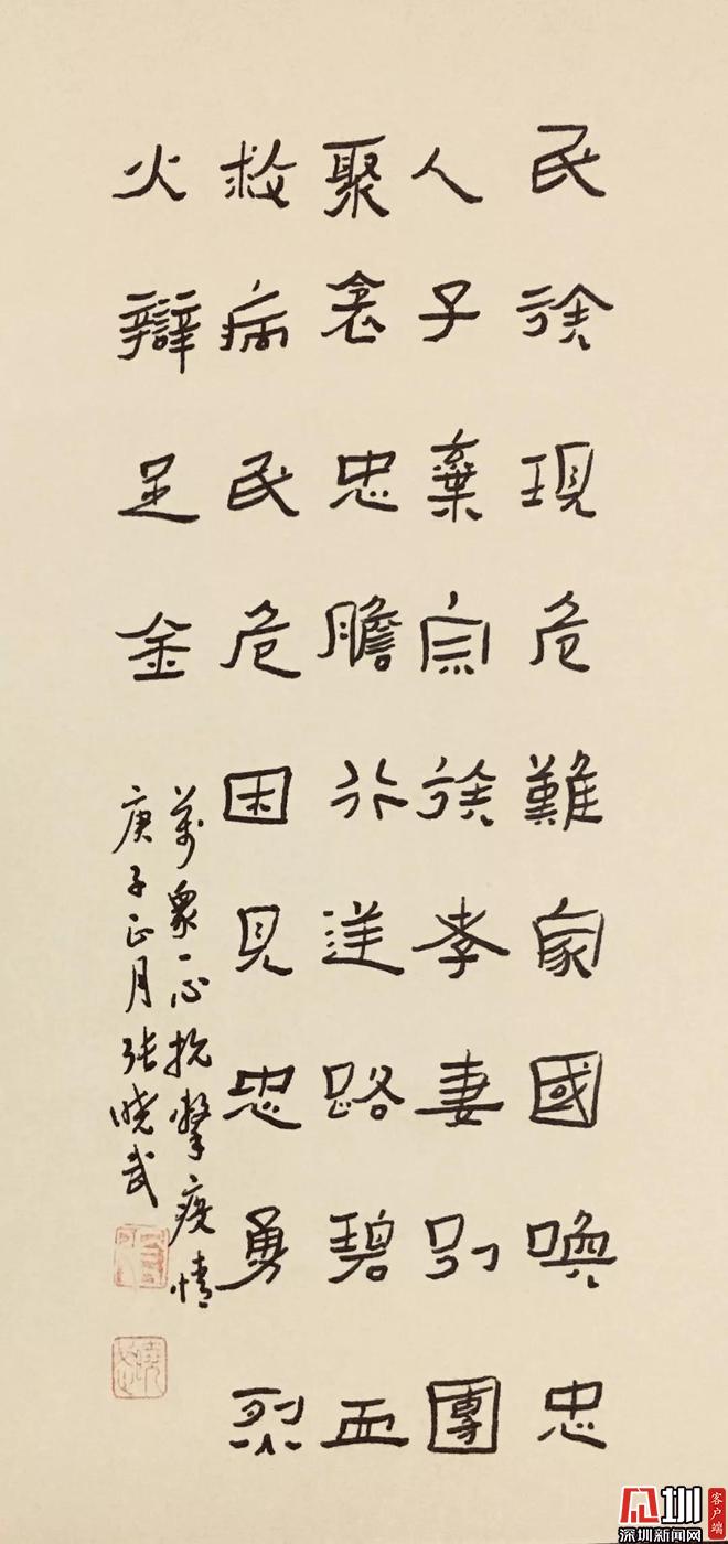 見圳客戶端.深圳新聞網(wǎng)訊(記者 鄭創(chuàng)彬)連日來,新型冠狀病毒肺炎疫情牽動(dòng)著每一個(gè)國人的心。2月11日,記者從鹽田區(qū)文聯(lián)獲悉,鹽田區(qū)書法家協(xié)會(huì)的成員們,雖不能和醫(yī)務(wù)工作者等直奔前線,卻無不心系疫情,利用自己手中的筆墨,以文藝作品鼓舞士氣,創(chuàng)作了許多凝聚力量的佳作,為打贏疫情防控阻擊戰(zhàn)加油助威。