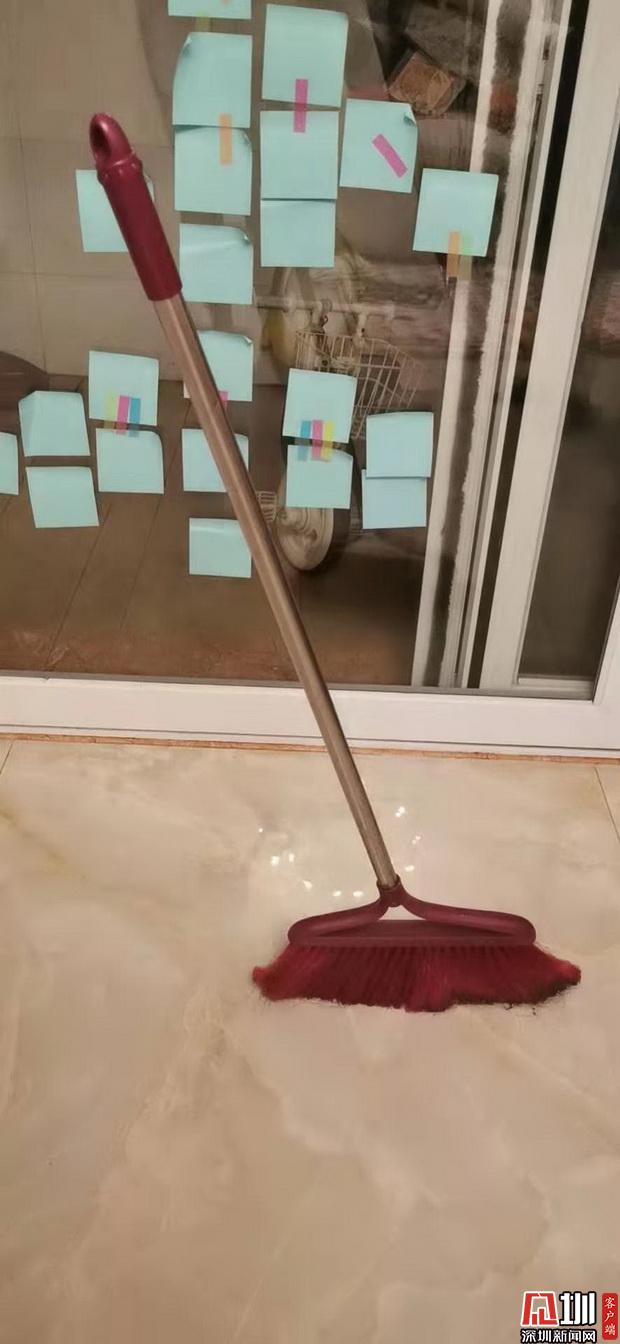 張小姐還沒做飯,先玩起來立掃把