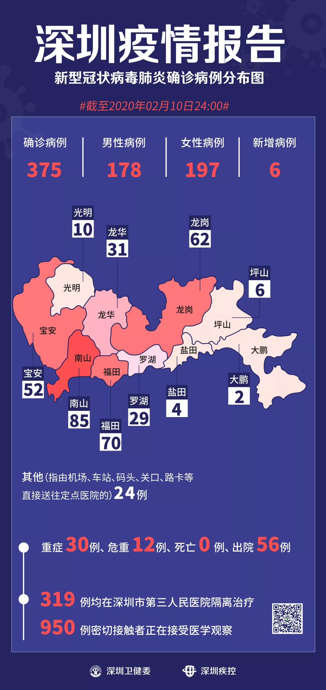 2月10日12時(shí)-24時(shí),深圳新增新型冠狀病毒肺炎確診病例6例。