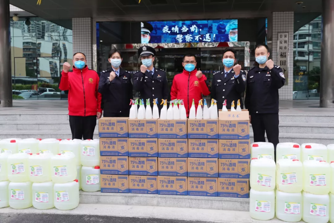 當天16時許,愛心企業(yè)代表肖先生帶著50桶20公斤消毒液、480瓶消毒酒精、20個噴壺來到了福田分局,捐贈給了福田警方。福田分局黨委委員、政治處主任桂禮強代表分局接收捐贈抗疫物資,并對愛心企業(yè)表示感謝。
