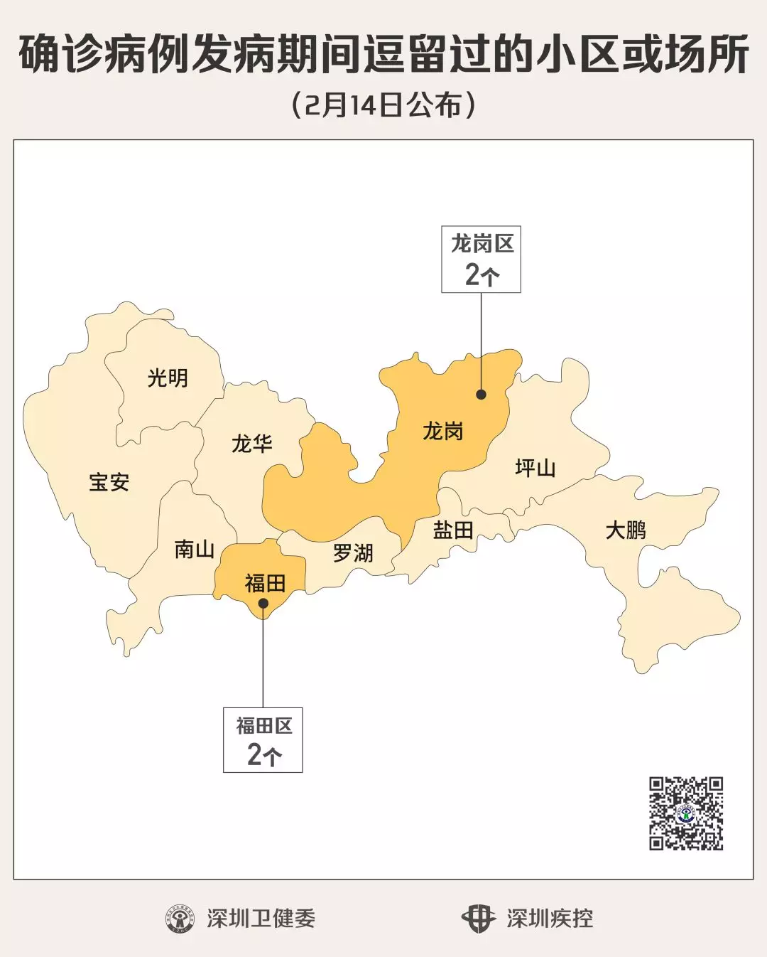經(jīng)過疾控專業(yè)人員的流行病學(xué)調(diào)查確認(rèn),2月14日,深圳新公布4個(gè)“涉病”小區(qū)(場所),有新確診的病人在發(fā)病期間曾經(jīng)逗留。