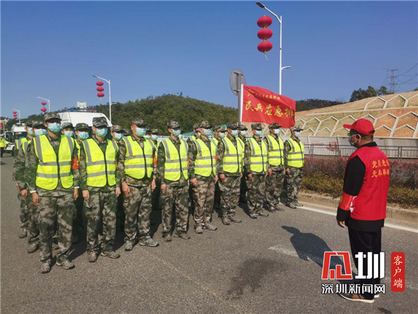 見圳客戶端·深圳新聞網(wǎng)2020年2月17日訊(見圳客戶端、深圳新聞網(wǎng)記者黃琬婷 通訊員羅國都)在龍崗大道坪地六聯(lián)市際檢查站,一排綠色身影煞是醒目。他們是龍崗街道民兵“突擊隊”,他們的任務(wù)是守住深圳北大門疫情防控的第一道防線。接到上級部門的指令后,立即集結(jié)隊伍,“疫情就是命令,防控就是責(zé)任”。于1月27日晚上10點準(zhǔn)時接管六聯(lián)檢查點聯(lián)防聯(lián)控工作,奮戰(zhàn)在疫情防控第一線。在疫情防控這個特殊的戰(zhàn)場上,他們都是“最美的逆行者”。