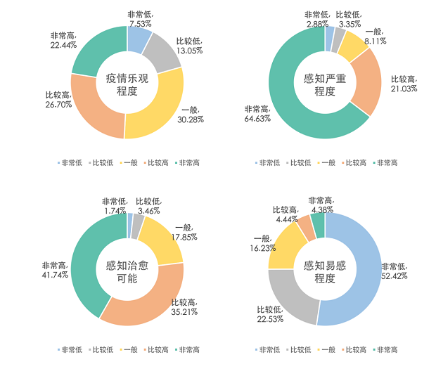 從深圳市民對疫情的感知情況來看,79.42%的受訪者對此次新冠肺炎疫情持積極態(tài)度。這種樂觀的態(tài)度尤其體現(xiàn)在深圳市民對于疾病易感程度和治愈可能的自我評估上。74.96%的受訪者表示自己感染新冠肺炎的可能性很小,認(rèn)為自己感染后能夠被治愈的人群占比更是達(dá)到了76.95%。一方面,這反映出深圳市民對于政府和醫(yī)院的疫情應(yīng)對措施的充分信任;另一方面,較低的感知易感度卻也暴露出了人們對于感染新冠肺炎可能存在僥幸心理。盡管如此,多數(shù)深圳市民還是能夠正確認(rèn)識此次疫情的嚴(yán)重性,認(rèn)為感染新冠肺炎將會對自身產(chǎn)生嚴(yán)重影響的受訪者占比達(dá)到了85.66%。