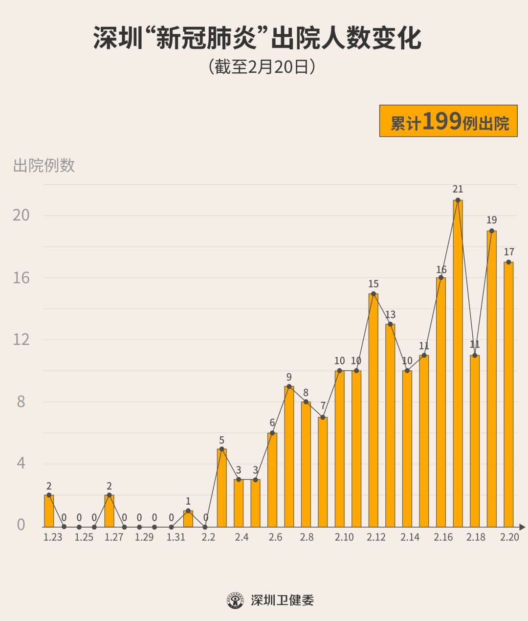 2月20日下午,經專家組會診,深圳再有17名新型冠狀病毒肺炎確診患者出院,累計達199人,連續(xù)18天有人出院。