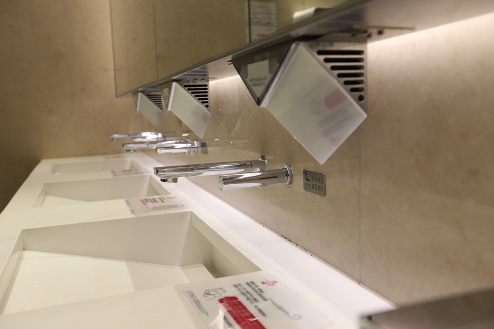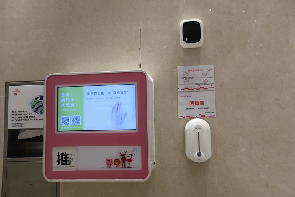 在一樓洗手間記者看到,洗手臺一側(cè)安置了消毒設(shè)備,并張貼使用提示。據(jù)悉,除了上述防疫物資,壹方城還采購了醫(yī)用手套、防護(hù)服、護(hù)目鏡以及消毒噴霧機(jī)3臺等,在所有出入口新增自動消毒設(shè)備55臺,在洗手間配置消毒設(shè)備186臺。