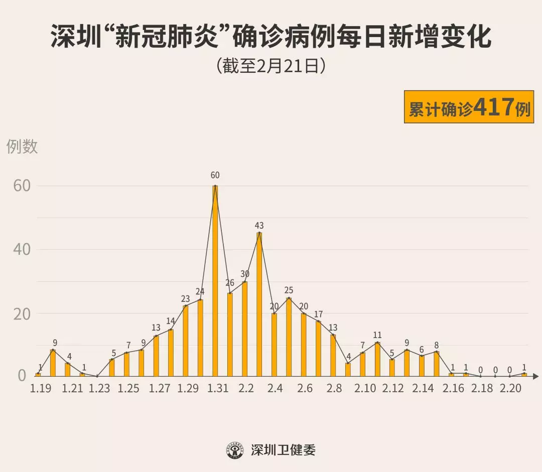 截至2月21日24時(shí),深圳累計(jì)報(bào)告“新冠肺炎”確診病例417例。2月21日當(dāng)天全市新增確診病例1例(個(gè)案詳情今晚公布)。 ▲新增出院病例已超過新增確診病例 累計(jì)報(bào)告確診病例中,男性197例、女性220例。 按照病例管理地區(qū)劃分,南山區(qū)87例、福田區(qū)81例、龍崗區(qū)71例、寶安區(qū)62例、龍華區(qū)34例、羅湖區(qū)32例、光明區(qū)11例、坪山區(qū)7例、鹽田區(qū)6例、大鵬新區(qū)2例、其他(指由機(jī)場(chǎng)、車站、碼頭、關(guān)口、路卡等直接送往定點(diǎn)醫(yī)院的)24例。 目前,重癥10例、危重癥9例,死亡2例,累計(jì)出院222例。 193例確診病例均在深圳市第三人民醫(yī)院隔離治療。 202例密切接觸者正在接受醫(yī)學(xué)觀察。 資料來(lái)源:深圳市疾控中心、深圳市衛(wèi)健委、廣東省衛(wèi)健委