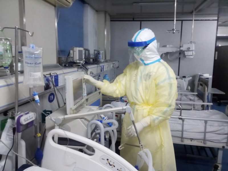 醫(yī)生在病房內(nèi)照顧病人