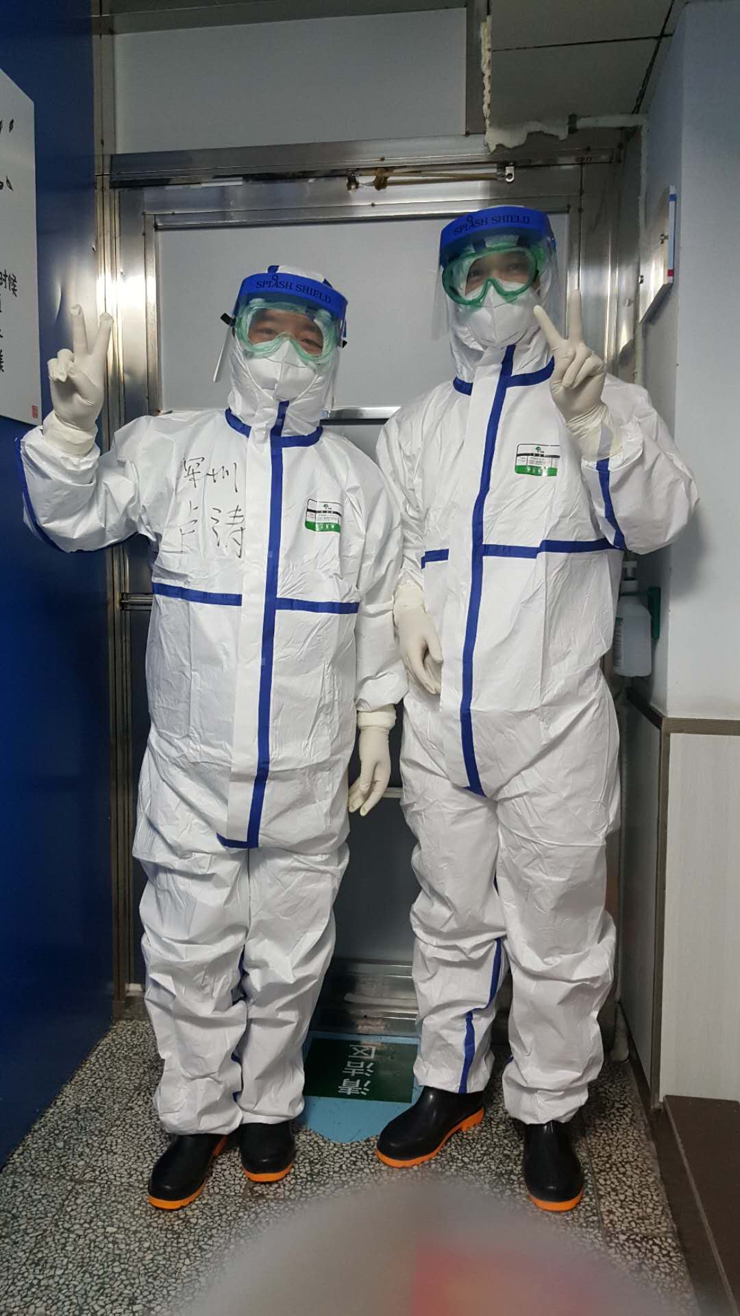 一切穿戴妥當(dāng),請護(hù)士長拍個照,留下了最珍貴最勇敢的照片。深吸一口氣,推門……我和我的隊員們一樣,沖上了最前沿!