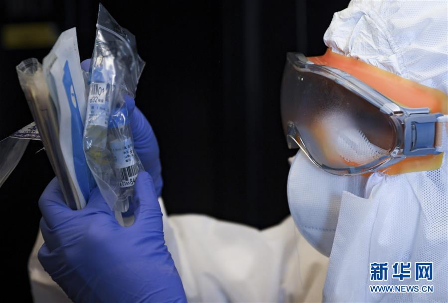 2月27日,在深圳龍崗的一家“健康驛站”,護(hù)士鐘笑瑜核對(duì)咽拭子采集人員的身份信息。 新華社記者 毛思倩 攝