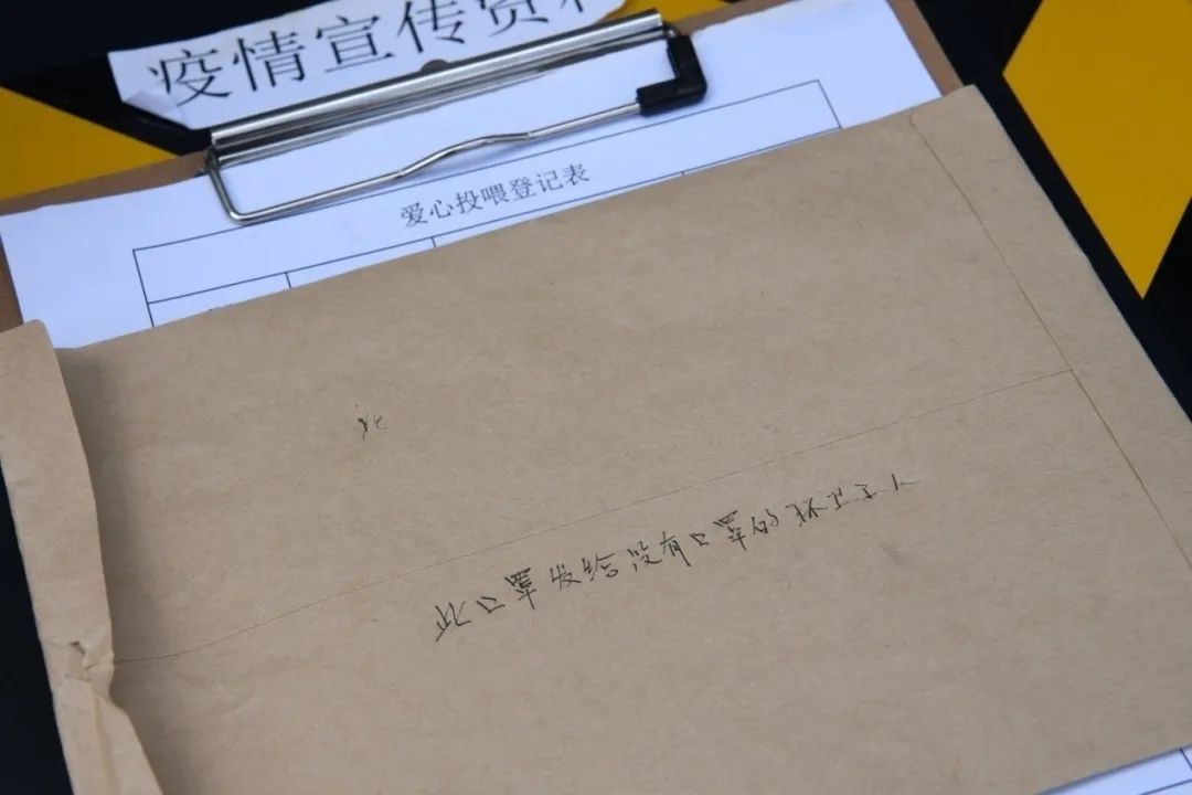 一位市民送來(lái)口罩,信封上寫(xiě)著“此口罩發(fā)給沒(méi)有口罩的環(huán)衛(wèi)工人”。